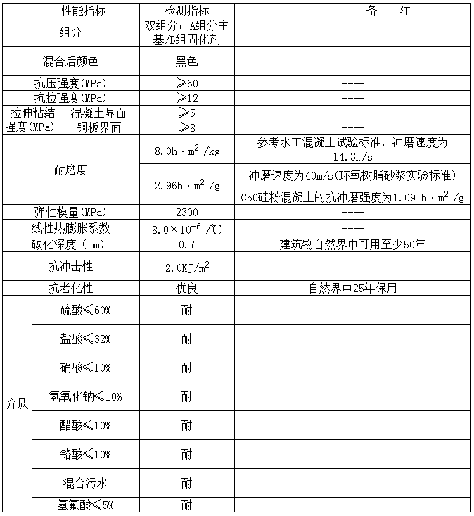 3、與混凝土的匹配性良好:良好的抗老化和抗碳化性能,使涂層能與混凝土在不同溫度下同步變形,避免了因材料脹縮差異大造成界面應力過大而出現涂層脫空、開裂。